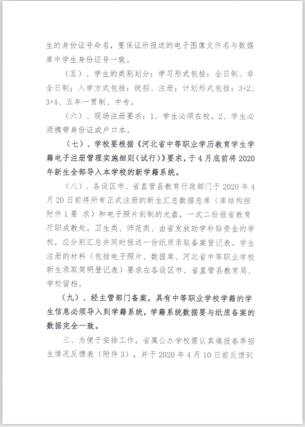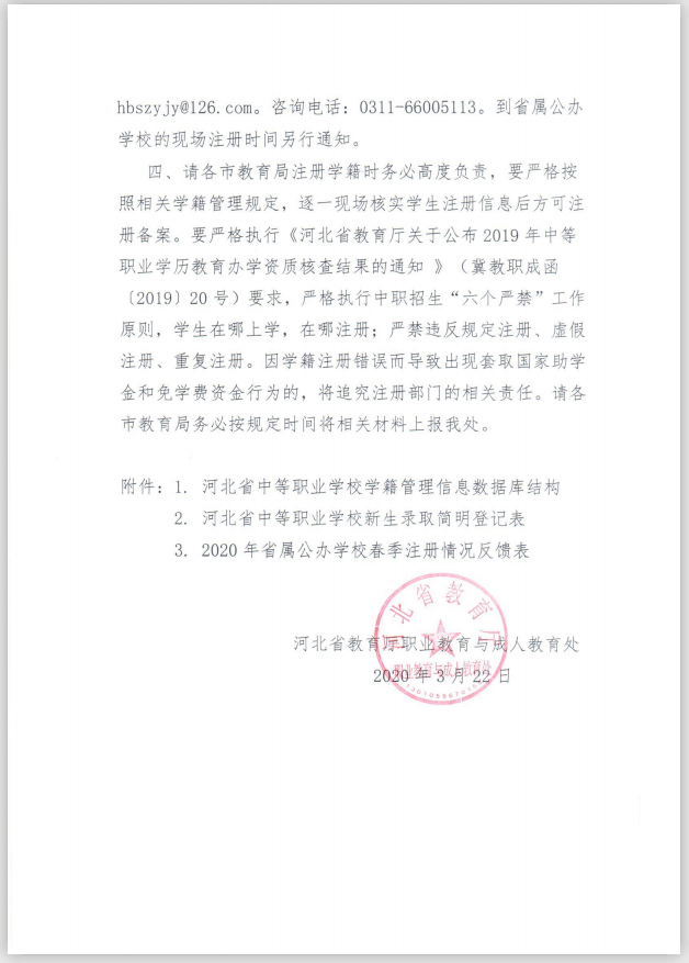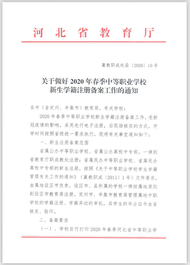 河北省教育厅下文件了--石家庄中专学校春季学籍可以注册了