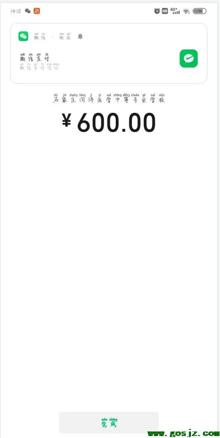 五、输入个人隐私的秘密账号,确定完成。校付通报名成功以后,在微信支付凭证里面有一个详情,你可以点击保存发给老师。
