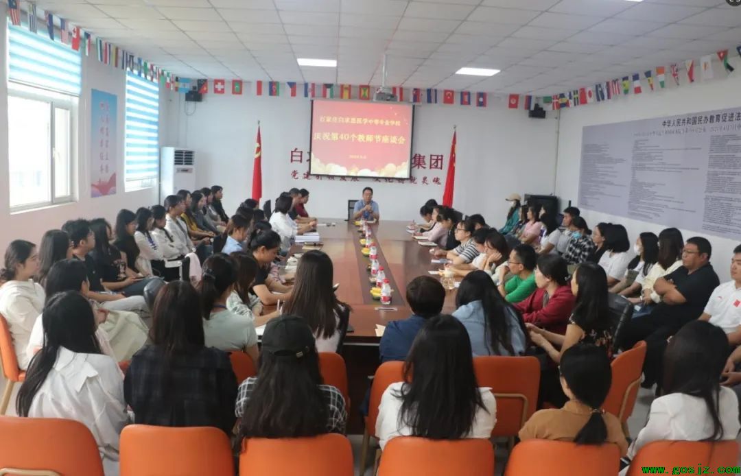 在第40个教师节来临之际,学校围绕“大力弘扬教育家精神,加快建设教育强国”主题,于2024年9月8日上午召开庆祝2023-2024学年优秀教师表彰大会和教师座谈会,弘扬新时代尊师重教风尚。董事长、校长赵红光、常务副校长尹志军、副校长陈金玲、副校长李卫波、财务总监武志卿出席,党支部书记杜麦熟主持大会。