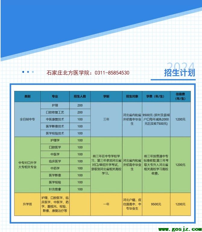 2024年春招石家庄北方医学中等专业学校(石家庄北方医学院)招生简章