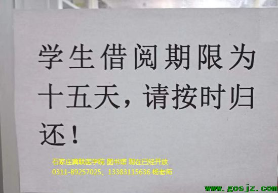 石家庄冀联医学中等专业学校图书馆什么时候开放阅读